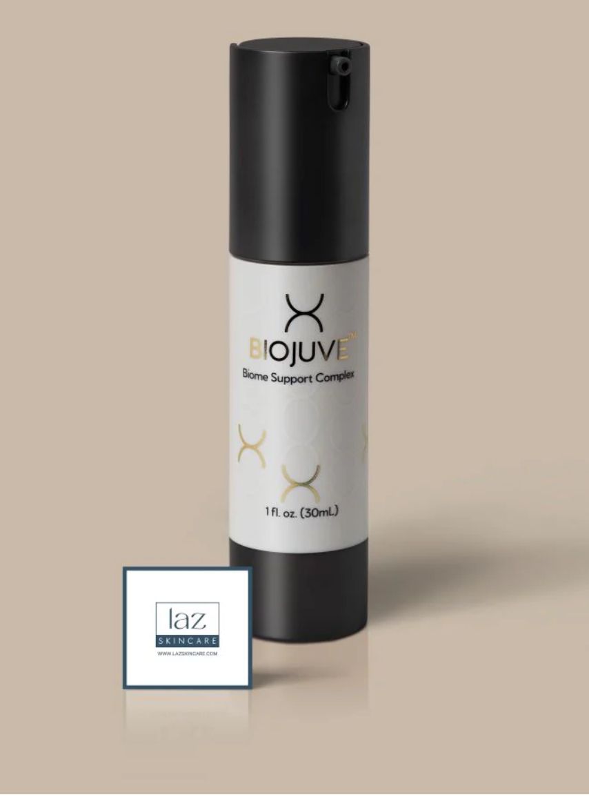 BIOJUVE Biome Support Complex is a powerful supplement featuring a blend of microbe-derived proteins, polypeptides, antioxidants, and more, designed to enhance the living microbe technology in the Living Biome Essentials Serum.